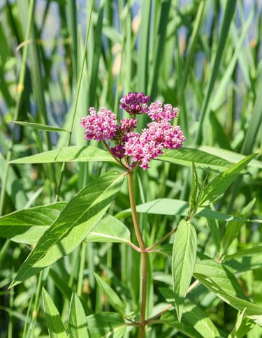 The large flower can vary in color from nearly white to deep pink-purple. The fragrance is very delicate and pleasing and numerous native pollinators will benefit during its long bloom time. Monarch butterflies lay their eggs exclusively on Milkweed plants, making them the sole food source for their larvae.