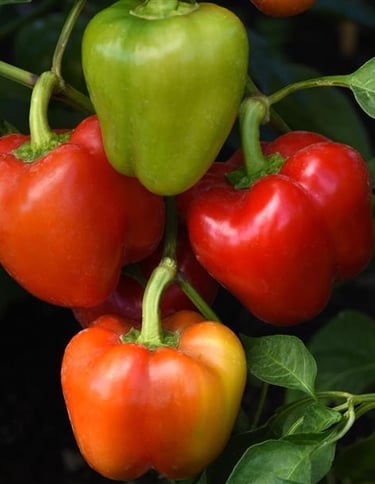 The delicious 2-3 lobe peppers have an excellent fresh flavor. Depending on the variety, peppers will ripen from green to chocolate to red or yellow.